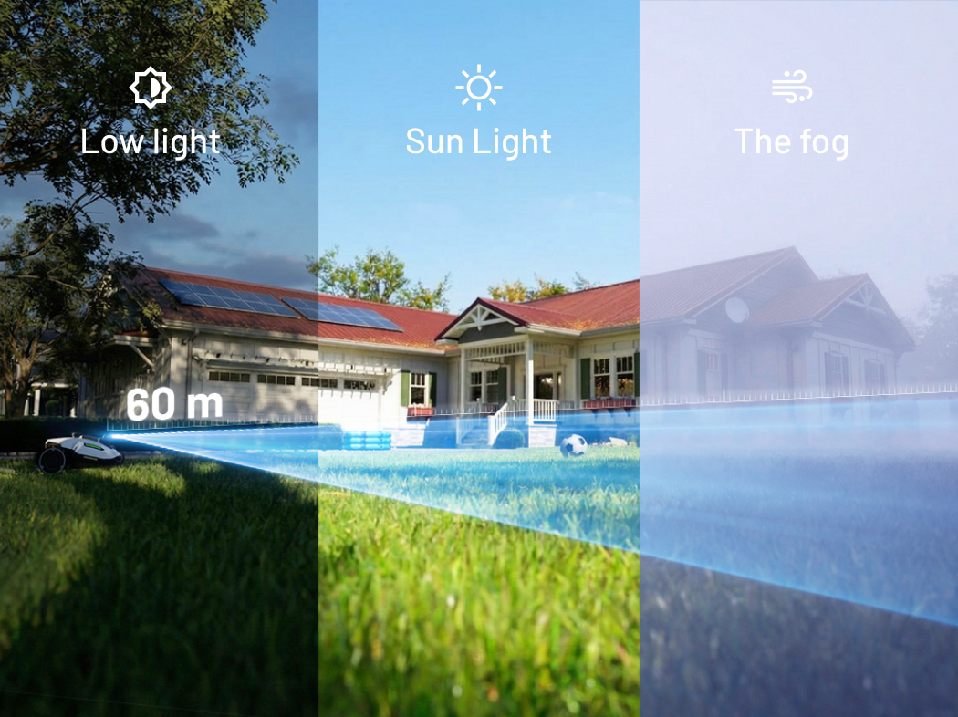 With high sensitivity and strong anti-interference performance, it maintains precise detection even in low light, tree shadows, or light fog — ensuring stable navigation and consistent mowing in any yard conditions.